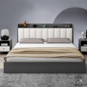 – Kiểu dáng: giường ngủ hộp đầu to bọc đệm tựa sang trọng
